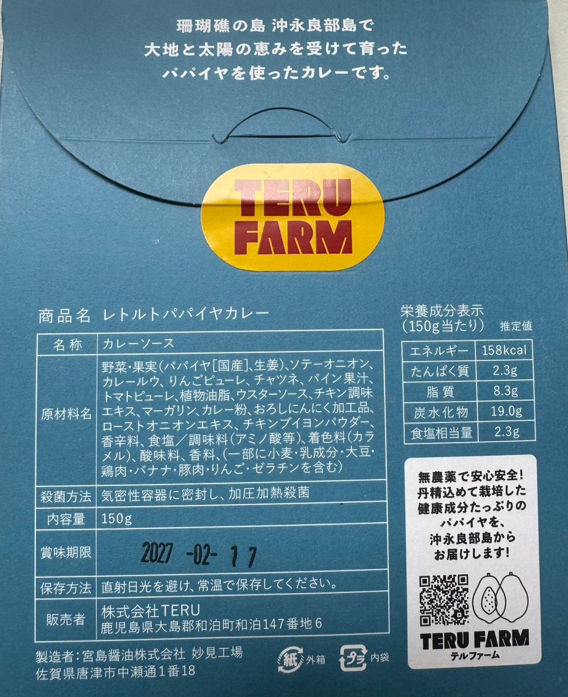 鹿児島県沖永良部島で育ったパパイヤを使用した、特別なレトルトカレー。豊かな大自然の中で養われたパパイヤは、まろやかな甘さとスパイスの香りが絶妙に融合しています。