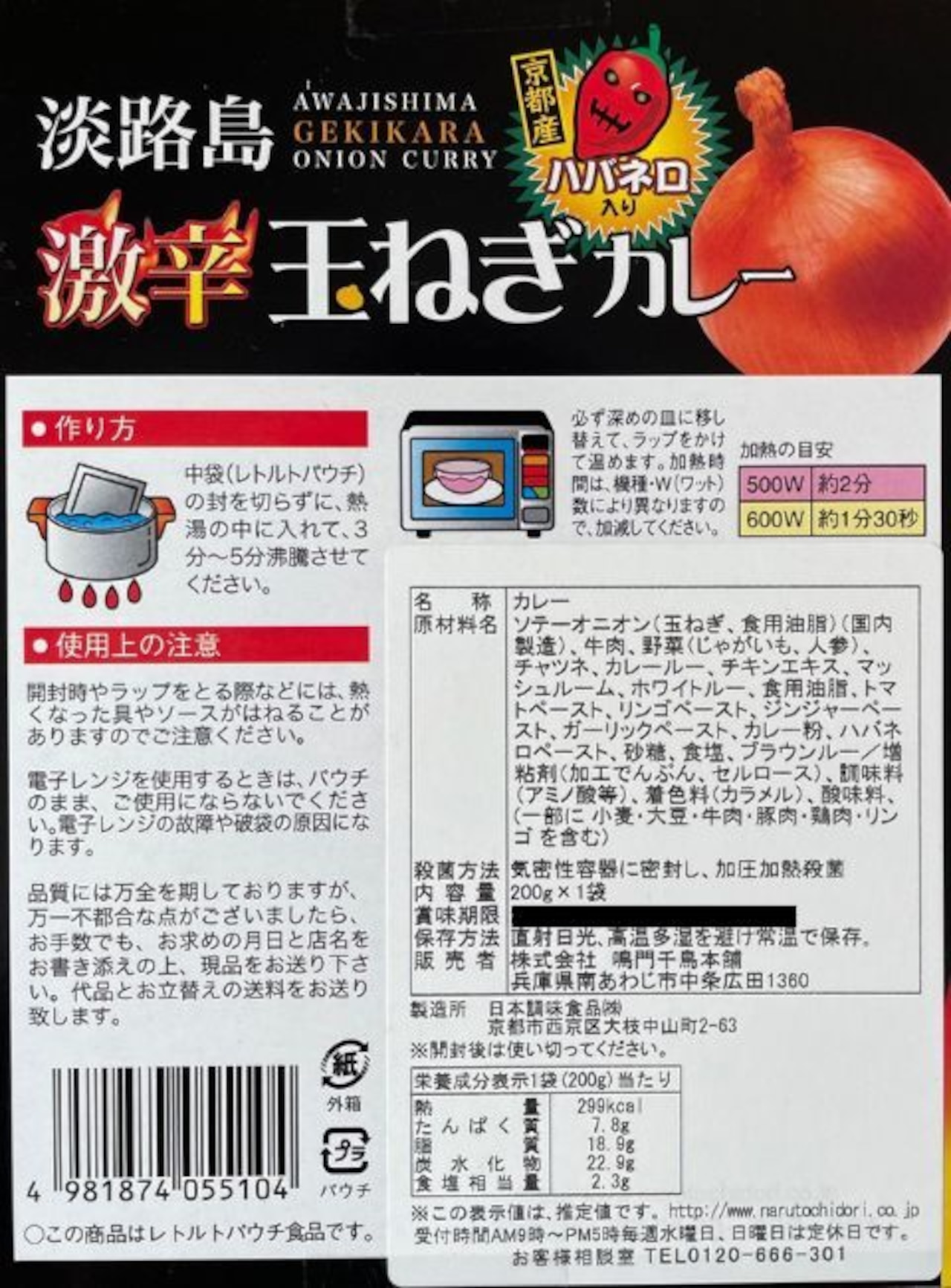 【兵庫県】玉ねぎカレー激辛ハバネロ入り 淡路島産玉ねぎと京都産ハバネロのコラボカレー