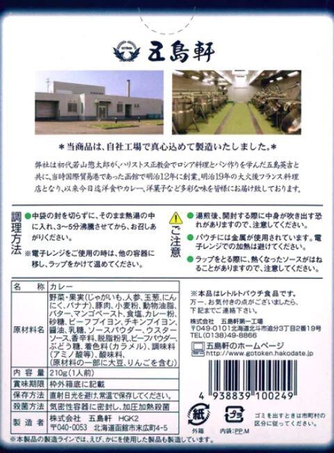 五島軒の味をそのまま遠方のお客様にも楽しんでいただくため、函館近郊に自社工場を建設し、 本店レストランで長年経験を培った料理人を工場長に据え、五島軒としての味を守り、 レストランの味を皆様にお届け出来るよう努力を惜しまず丁寧に仕上げています。