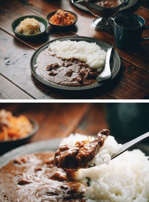 じっくり煮込まれているため、豚角煮の旨味がルーに溶け込み、コクとまろやかさを生み出しています。