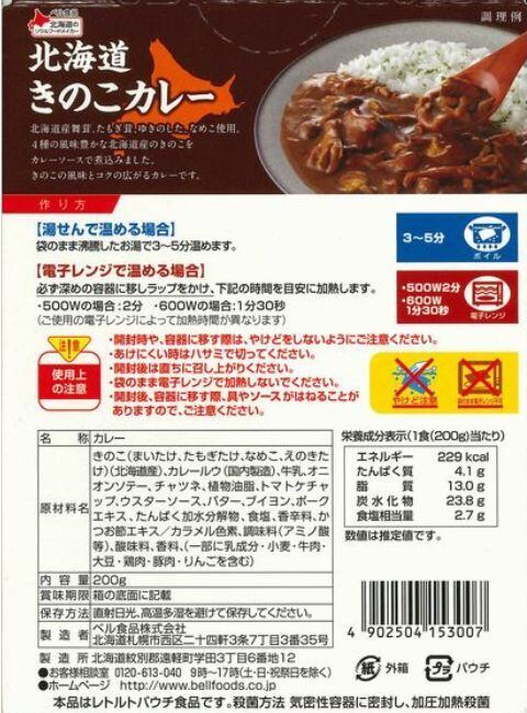【北海道】北海道きのこカレー 4種のきのこを贅沢に使用した絶品カレー レトルト|ご当地カレー お取り寄せ 通販