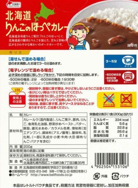 【北海道】北海道りんごのほっぺカレー 美味しさ丸ごと!北海道余市産ストレート果汁使用 レトルト|ご当地カレー お取り寄せ 通販