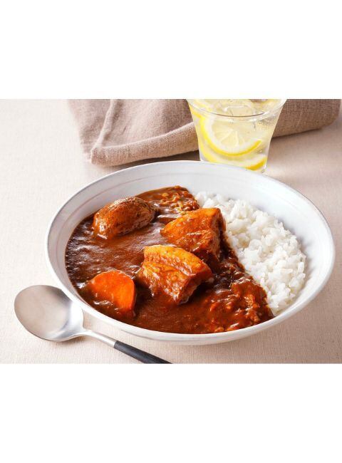 やわらかく煮込んだ大きな豚角煮と北海道産の皮付きじゃがいも、にんじんが入った濃厚な味わいのカレーです。