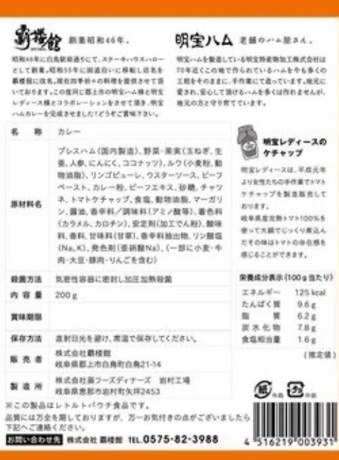 良質な国産の豚肉だけを原料とし、ハム職人達が手間ひまをかけて1本1本丁寧に作り上げた幻のハム「明宝ハム」そんなハムをじっくり煮込む事により、旨味がたっぷり詰まったルーが魅力です。