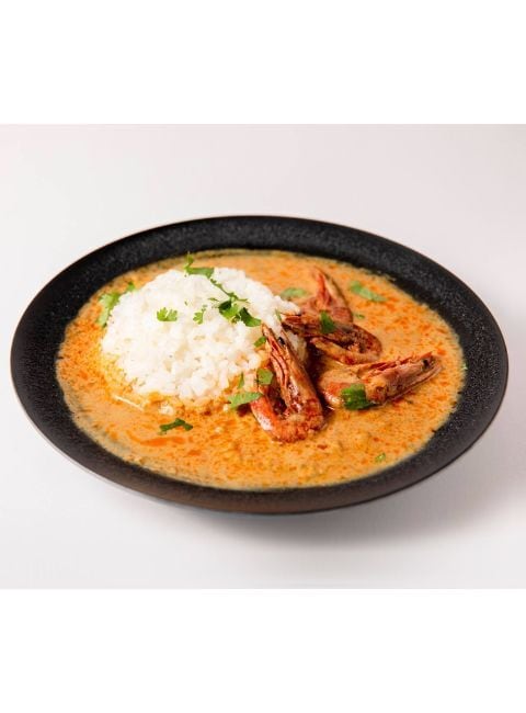 奄美大島宇検養殖産の車えびが入り、車えびまるごとの旨み+スパイス+ココナツがおりなす旨みの贅沢カレーです。