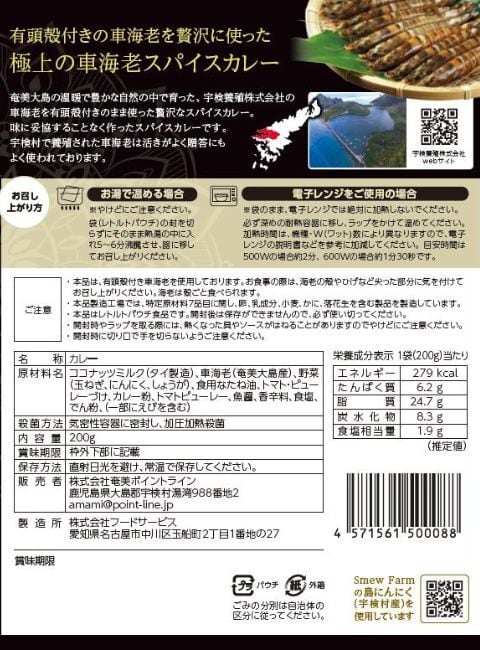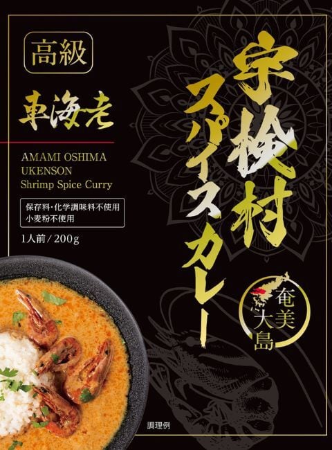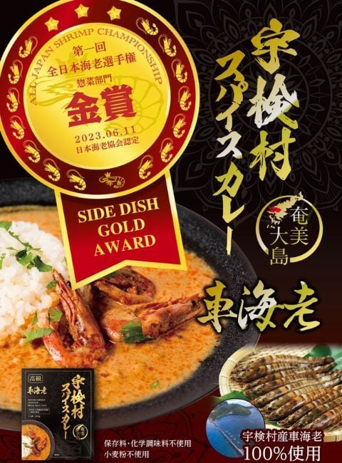 日本一広大な奄美大島・宇検村の車海老養殖施設ですくすく育った車海老をふんだんに使った高級カレーです。